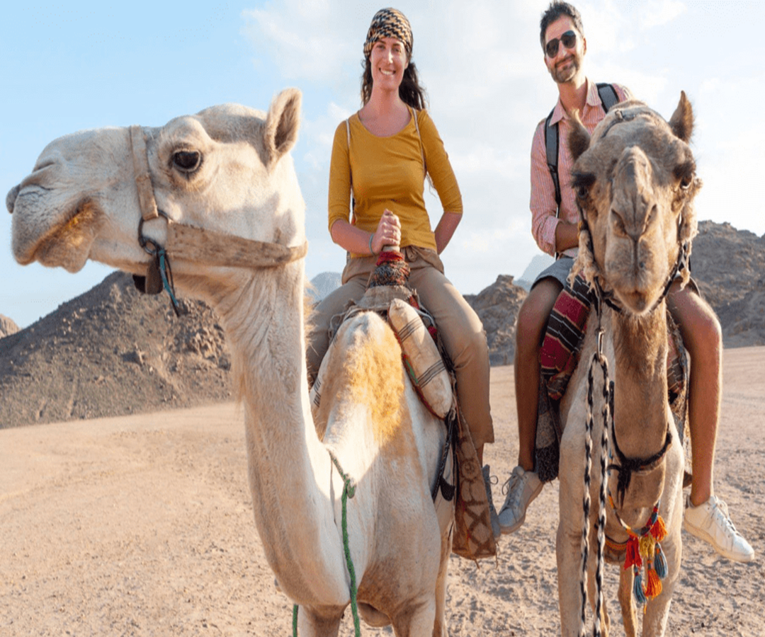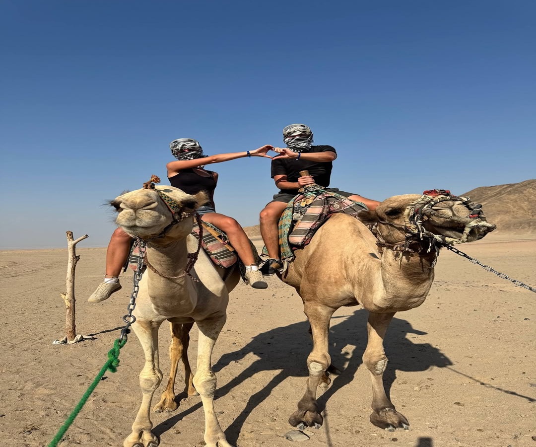Their adventure begins with an exciting 4x4 jeep journey through the vast Hurghada desert, traversing rugged terrain and towering sand dunes.